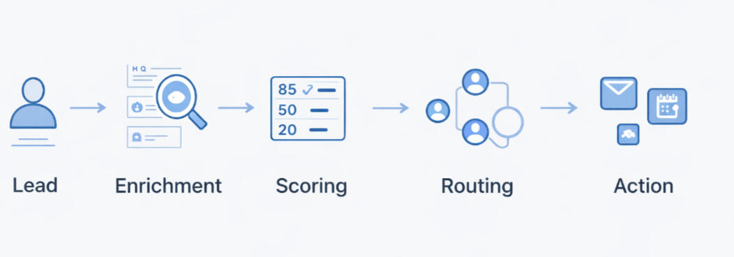 GTM Automation Build: Lead capture, enrichment, scoring, routing, follow-up and reporting, designed as one system.